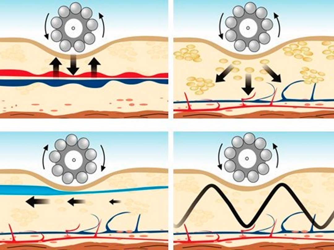 Під час процедури сфери в маніпулі генерують механічні вібрації на низькій частоті. Методика неінвазивна і безболісна, не травмує шкіру, судини і не залишає синців. Така процедура комплексно впливає на весь організм.