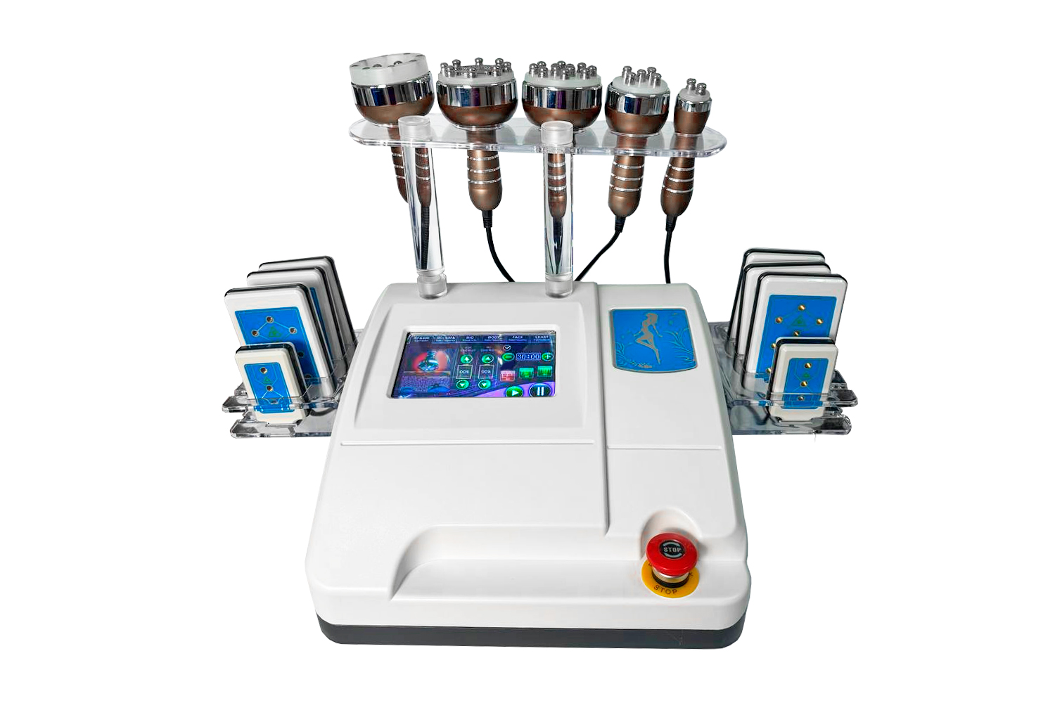 У комплект апарату входить 10 накладок, що дозволяє впливати на всі ділянки тіла. Основною перевагою лазерного ліполізу є його цілеспрямована здатність до видалення жиру у проблемній зоні. Така особливість дозволяє ефективно моделювати фігуру клієнта, формуючи бажані контури тіла.