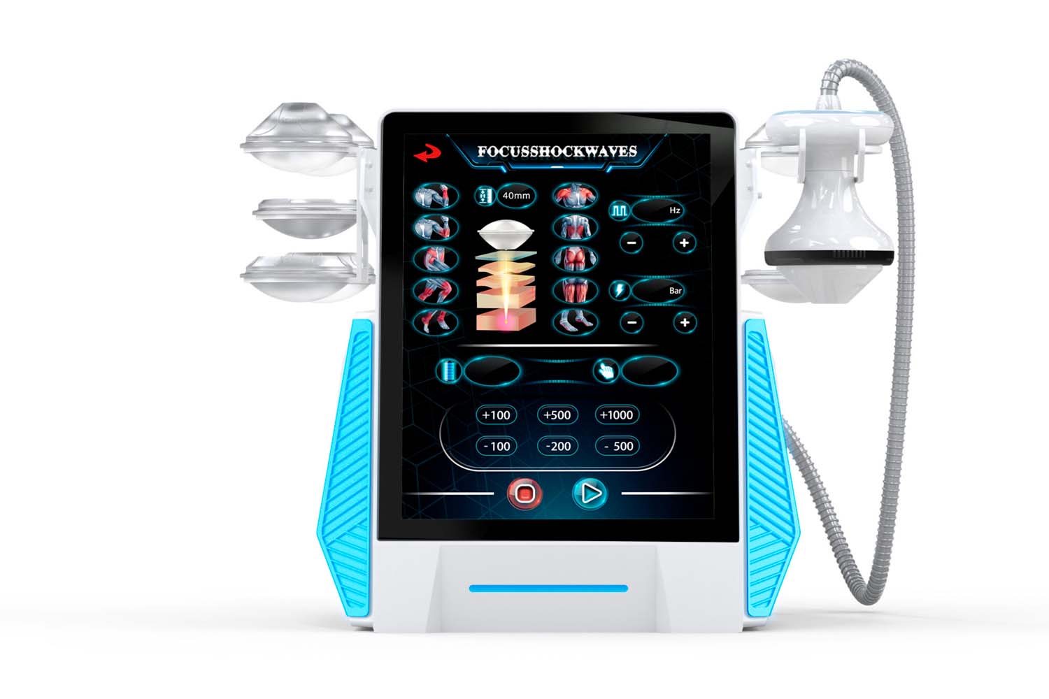 Завдяки регульованій частоті ударів та змінним насадкам, ERV-10 дозволяє точно налаштовувати дію апарату під індивідуальні особливості кожного пацієнта, досягаючи максимального результату. Висока ефективність апарату проявляється вже після першої процедури – пацієнти відзначають помітне зменшення болю, покращення рухливості та видимий естетичний результат.