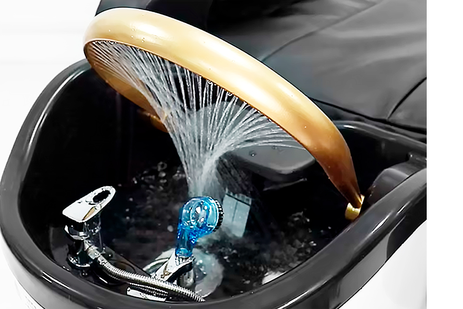 Кресло-мойка также оборудовано 75 выходами каналов для воды, что обеспечивает равномерное увлажнение и ополаскивание волос. Для дополнительного комфорта предусмотрена хромотерапия, создающая расслабляющую атмосферу.